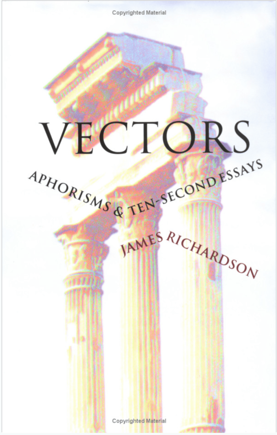 I am a huge fan of James Richardson, so I’ll be posting some of his aphorisms and poetry now and then. Link below goes to Amazon (non-affiliate, just a plain link). He’s an astounding author and I highly recommend Vectors for aphorisms and Reservations as an intro to his poetry.