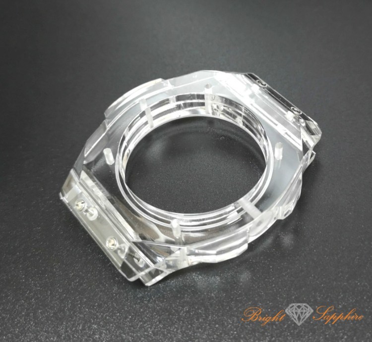 Sapphire, I think first used in a six-figure Richard Mille, is now heading towards affordable, and though I’ve not checked prices I hope to see one in person soon. I as part of my RSS habit, I follow the Korpela and Hofs blog and they just shared the above image – a sapphire case from Hong Kong-based Bright Sapphire. Here’s another image from Bright:
