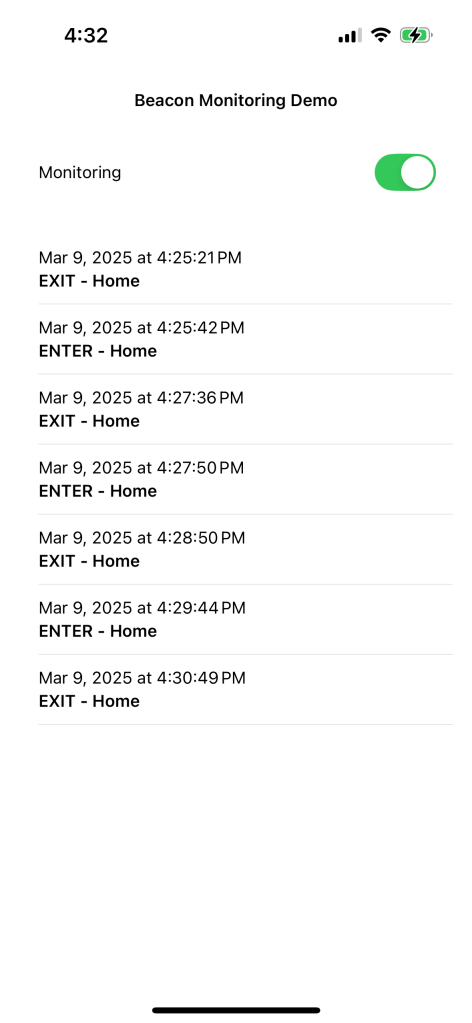 Anyway, this is the current state – side project (open source here) is an iOS app in SwiftUI that will automatically capture context using Bluetooth iBeacons with the goal of generating a log that can become contact engineer billing records. The idea: