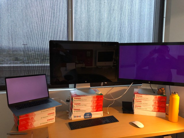 Twice in two days, when I plug in the monitors I get solid colors and nothing else. Forced reboot.