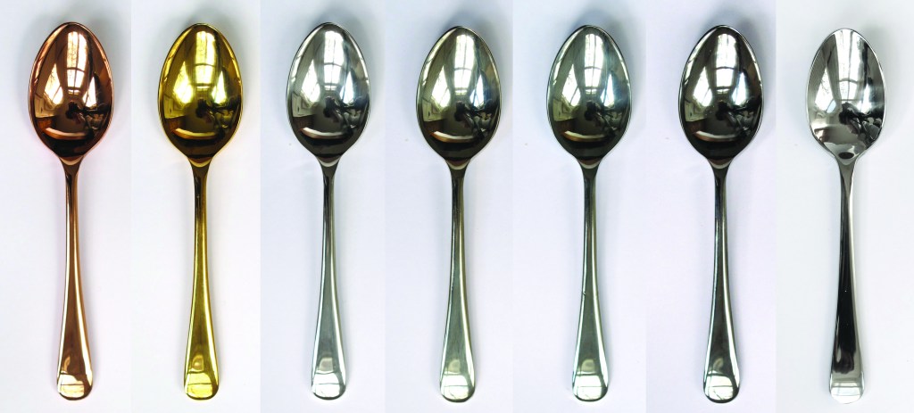 Different metals change the flavor of the food. More than you might think, especially if like me you’ve been dining from stainless steel your entire life. This fantastic post and accompanying Gastropod podcast will, if you’re like me, inspire you go go in search of less-expensive gold plated spoons. My lovely wife humored me and found a set of four for around $40 but I don’t know the source. Sorry. Don’t be fooled by gold-colored ones made from a titanium film – no idea how that’ll taste.